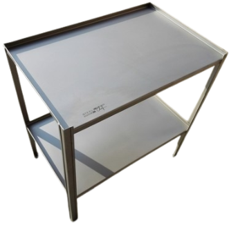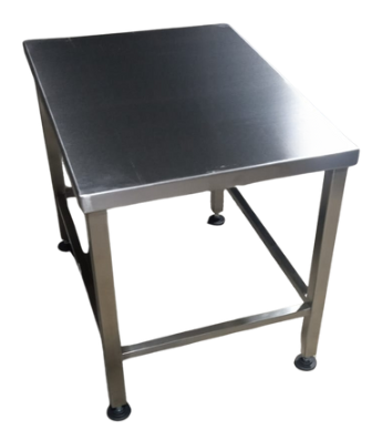 Mesa pequeña en acero inoxidable con patas de medida estar de 1.5″ de diámetro. Medidas personalizables.